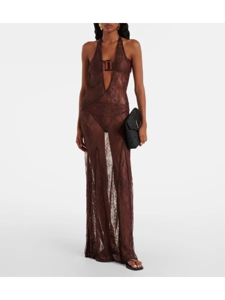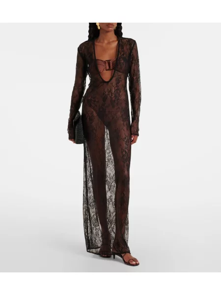 Priehľadné čipkované oblekové maxi šaty