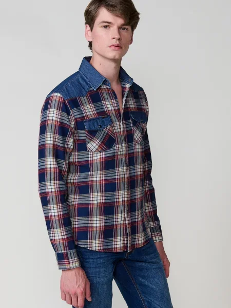 Mustang Košeľa CHESTER námornícka / indigo / brusnicová / šedobiela